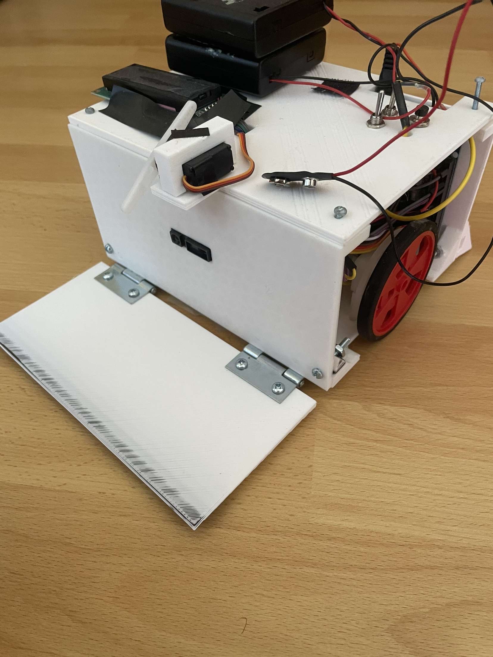 Developed an Arduino-powered autonomous robot for a sumo competition, designed to adhere to sumo rules by engaging and pushing opponents out of the ring. The robot featured a custom 3D-printed chassis, with an Arduino serving as the primary control system, powered by a 9-volt battery. Dual battery packs, each containing AA batteries, supplied power to the motor driver. Advanced sensors, including hypersonic and Sharp modules, enabled opponent detection and engagement, while a superbright LED and phototransistor provided precise line detection. The robot also incorporated a servo motor for an automated platform-deployment system and an LCD screen to display operational statuses, such as “ATTACK” or “FINDING,” based on opponent detection via lidar sensors, ensuring optimized performance during competition.