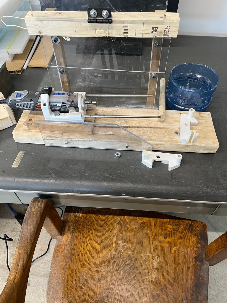 After weeks of iteration, I built a setup similar to a horizontal, single-axis milling machine that could reliably grind the wire down to spec. The setup was assembled using a combination of 3D printed components, scrap wood, and other leftover materials like plexiglass. It proved to be a cost-effective and functional solution for producing the initial sample parts for the customer.