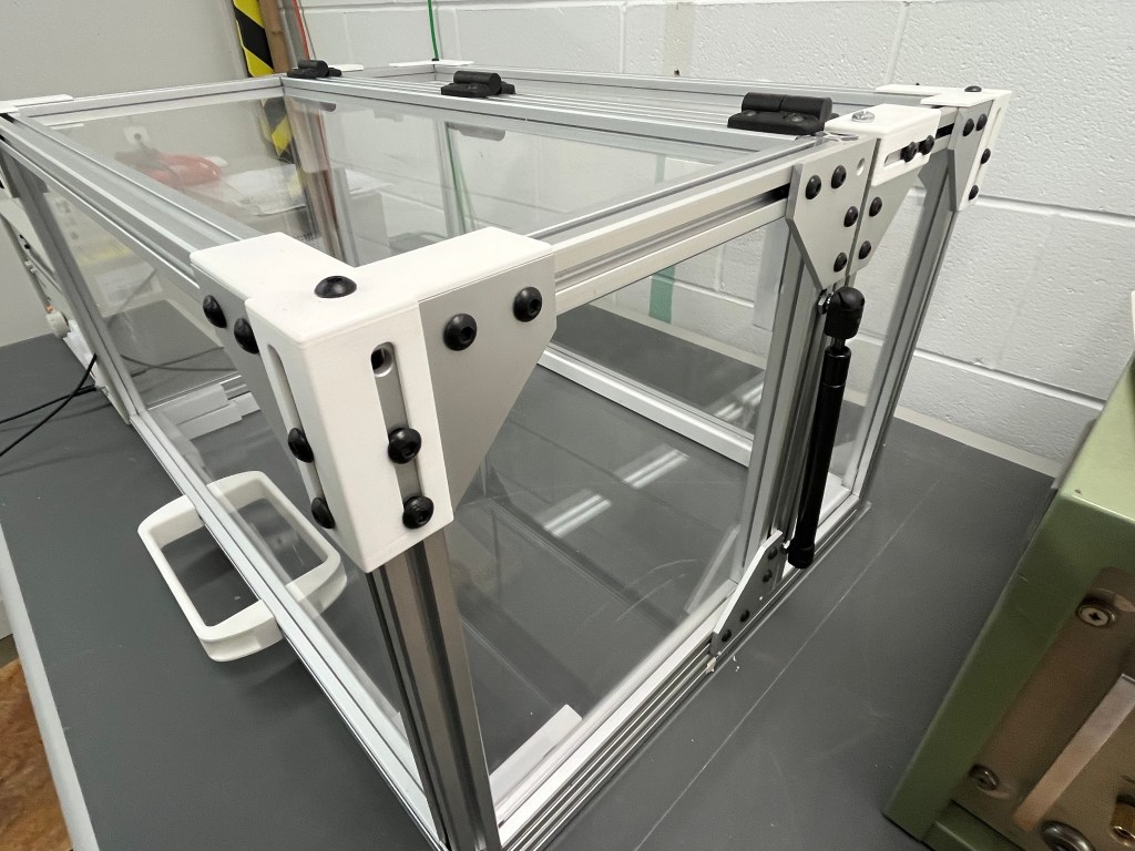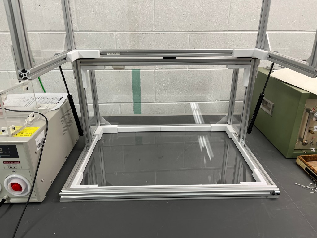 I designed and built a high voltage safety enclosure for hipot testing intended for repeat use in a production environment. Throughout the project, I coordinated closely with other engineers to integrate the enclosure into a broader electrical safety box system, ensuring seamless compatibility with existing controls and safety infrastructure. The work involved researching safety requirements, sourcing materials and independently designing, machining, and assembling the enclosure. I integrated electromagnetic safety interlocks, gas shock mechanisms for controlled opening and closing as well as 3D printed a PC FR insulating base to improve electrical isolation and overall safety. The final enclosure is rated for electrical testing up to 20kV and is actively used in manufacturing It is delivering a production ready solution that improves operator safety and standardizes high voltage testing procedures.