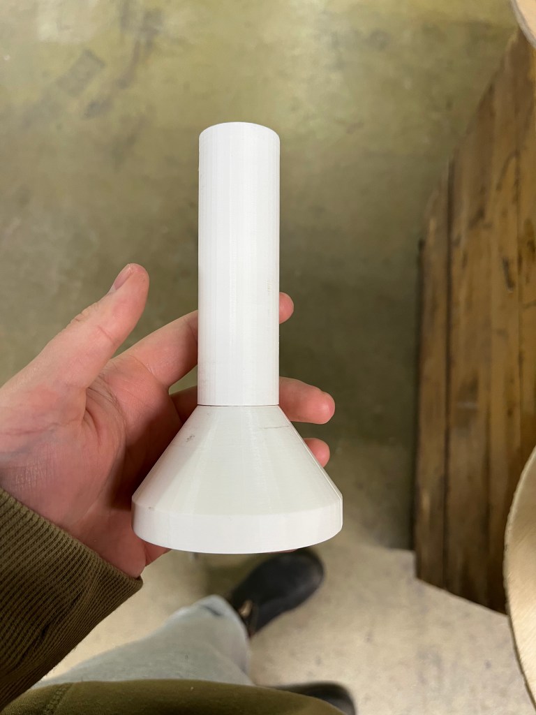 To solve this, I designed a spool tightener using a truncated cone with internal threading that fits snugly into the center of the spool, securing it to the turntable. This helped stabilize the spool and made the unwinding process much smoother and more consistent.