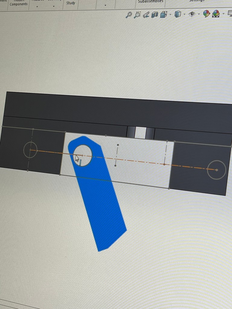 As an initial solution, I created a “flag” using scrap plastic, an aluminum rod, and electrical tape. This device was intended to slide into the part’s holes, acting as a visual marker to guide the worker during wire wrapping. However, the design proved ineffective because the steel jig used in the production process prevented the aluminum rod from fitting properly, making the flag unusable.